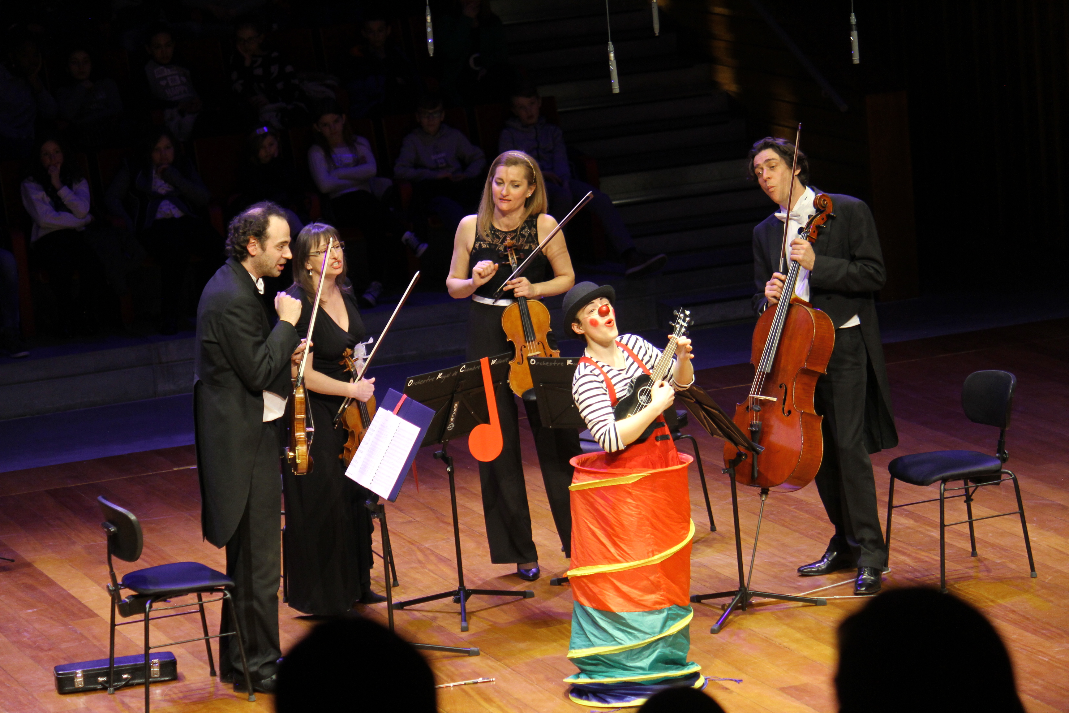 Un clown au pays de la musique classique, opus 4, est un spectacle qui ravit les petits et grands enfants. Les coups de cœur du clown pour des instruments surprises (cuillère à café, ukulélé, klaxon…) viennent joyeusement compléter le quatuor à cordes, le métamorphosant en un quintette inédit où les clowneries poétiques se mêlent à l’enchantement des grands standards du répertoire classique.